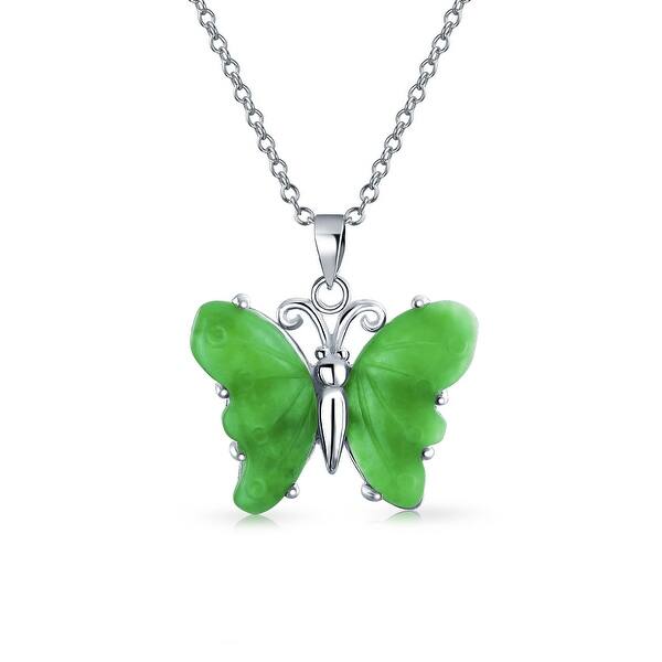 Shop Carved Green Jade Garden Butterfly Pendant Necklace For
