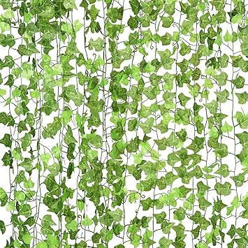 Dearhouse 12 Strands Artificial Ivy Leaf Plants Vine Hanging Garland Fake Foliage Flowers Home Kitchen Garden Office Wedding Wall Decor 91 Feet