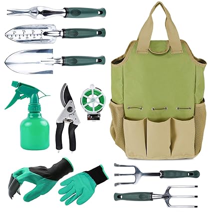 Inno Stage Garden Tool Organizer Tote Bag With 10 Piece Garden Tools Best Gardening Gift Set Vegetable Garden Tool Kit Gardening Hand Tools Set Bag
